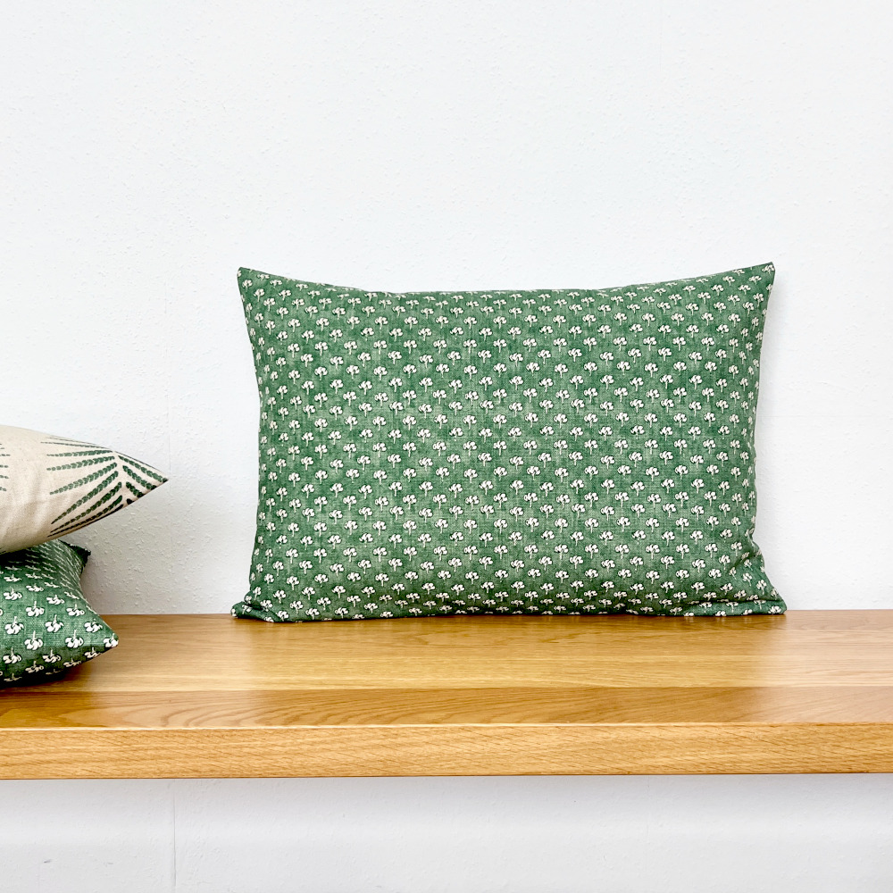 Hochwertige Kissenhülle mit kleinem Blumenprint in grün natur für die gemütliche Jahreszeit. Schön in der Kombination mit den Kissen LINA, GROVE und CHEST. Die Kissenhülle ist ebenfalls in den Größen 30x50 und 40x60 erhältlich.